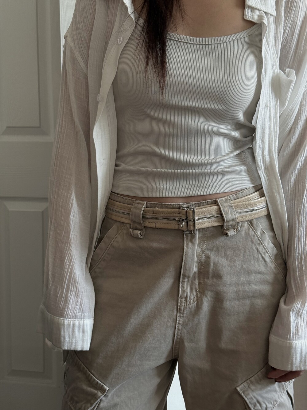지퍼 디테일을 활용한 얼이스트의 지퍼 시리즈 스펜서 밸트입니다.