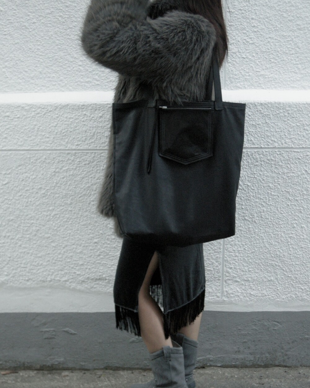 내부 포켓을 바깥으로 연출한 인사이드 아웃 토트백입니다.